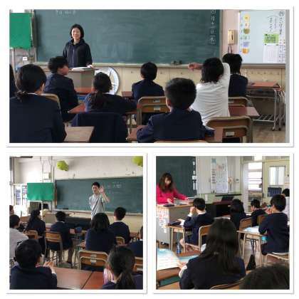 写真はそれぞれ、違うクラスの担任がちがうクラスの学習を子どもたちとともにつくっています。