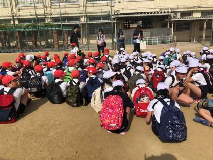 3.4年生の遠足です。暑いぐらいのいいお天気です。