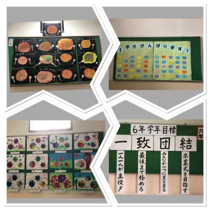 それぞれの学年掲示板に展示されている作品です。 どうぞ参観の時にご覧ください。