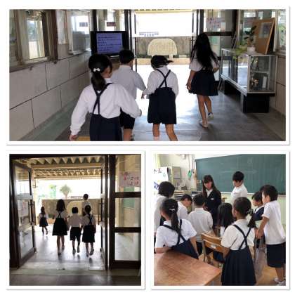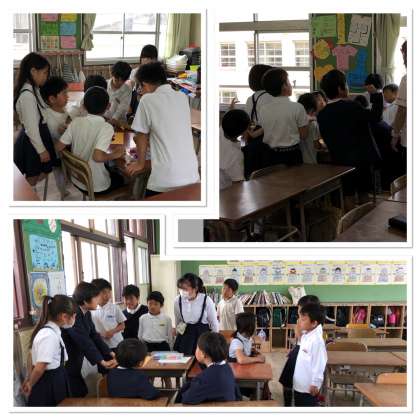 縦割り班で1年生から6年生までが出会いました。さすが、長吉東小学校のリーダーの6年生です。1年生を迎えに行ったら、優しく手をつないで自分たちのクラスへ連れて行っていました。