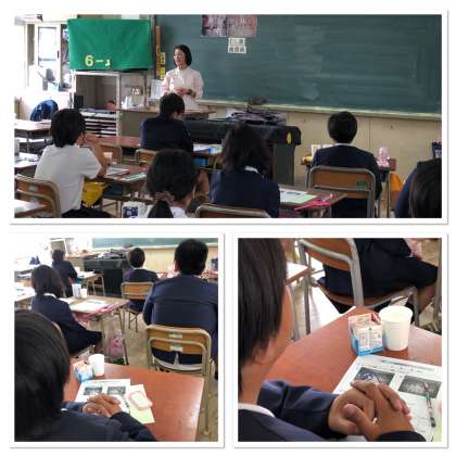 学校では、いろいろな命を守る学習があります。今日は、6年生で歯と口の健康教室を歯科衛生士さんを迎えて行いました。