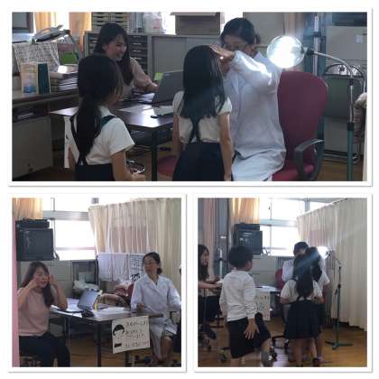 眼科検診がありました。眼科の先生がやさしくめを持ちあげてくださいます。