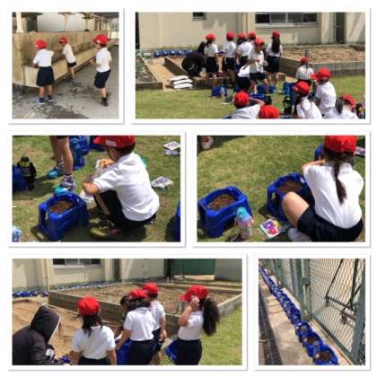 アサガオの種をまきました。今から芽が出て花が咲くのを楽しみにしている心優しい1年生です。