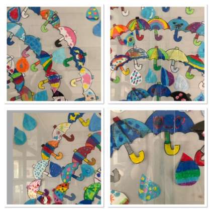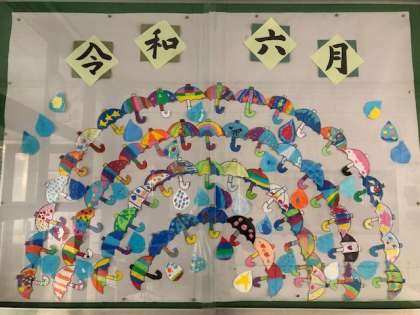 6月の玄関掲示です。4年生の作品です。こんな傘があったら雨の日も気分はウキウキします。