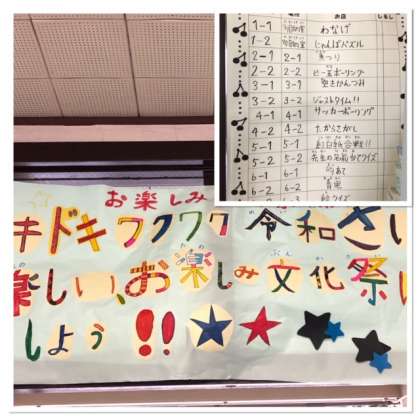 今年度のお楽しみ文化祭のテーマは、ドキドキワクワク令和さいしょの楽しいお楽しみ文化祭にしよう。です。