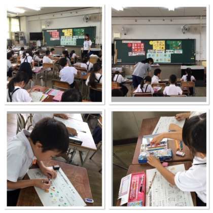食べものを、赤色 黄色 緑色 の3つに分けました。一生懸命に考えています。これから食べ物を見たら3つに分けたくなるでしょう。
