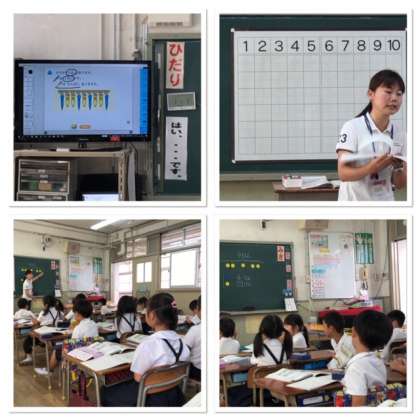 テレビにうつしたり、ノートと同じマス目のホワイト黒板を使ったりして、視覚から入るわかりやすい工夫をしています。