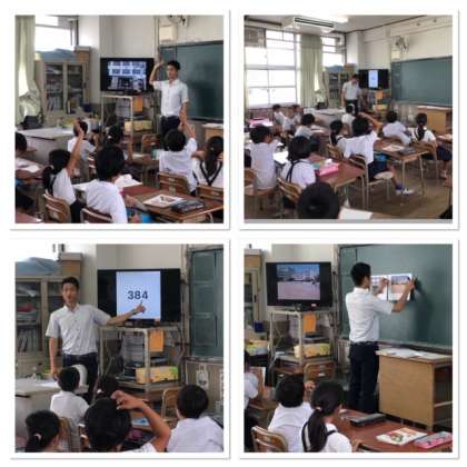 最初に映像を見ました。長吉東小学校と長吉南小学校が出ました。身近な題材を使って、どちらの小学校の人数が多いかを考えました。三桁の整数になります。百の位は同じ。では十の位?一の位はどうかな?と考えます。ここでもどちらが多いかわかっても、なぜそう考えたのかが大切になります。2年生らしく一生懸命に考えていました。そして新しく不等号を使った表し方を知りました。それもカエルを使って向きを示すなど、子どもがわかりやすくなる工夫がたくさんありました。