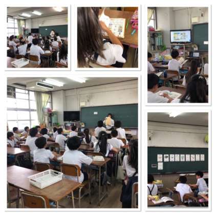 2020年から外国語活動が外国語科になります。5年のイングリッシュタイムはそのことも見越して、最初にアルファベットを学習しました。その後は学習カードを使って単語の練習をしたり、これは何ですか?ゲームをしたりしました。英語に慣れることが大切です。子どもたちは、楽しんで学習をしていました。