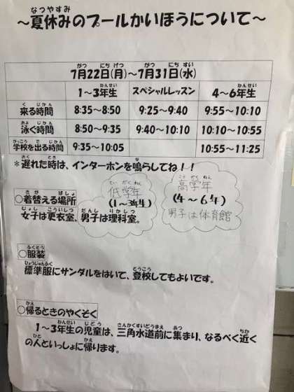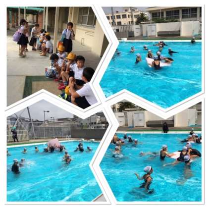 プール開放です。昨日は残念ながらできなかったので、今日がスタートになりました。