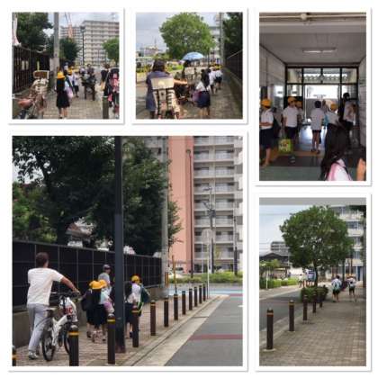 今までは教職員だけでしたが、今年度から、保護者の皆さんもきてくださることになりました。今日は、保護者の方々が、時間通り学校にきてくださり、子どもたちを教職員とともに送ることができました。夏休みも子どもの安全を考えていただき、ありがとうございます。