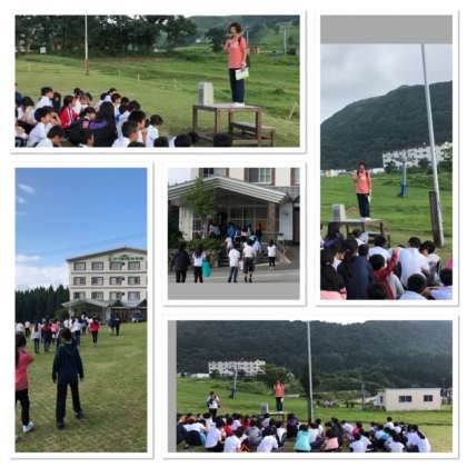 高原で朝のつどいをしました。