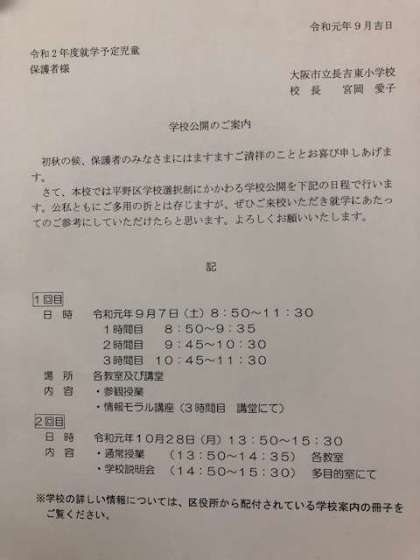 9月7日の土曜授業は、新1年生のみなさんの学校公開日にもなっています。