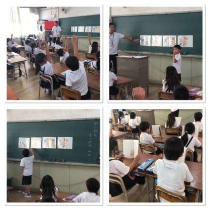 物語文「かいがら」を学習しました。今日のめあては、「うさぎの子になったつもりで、くまの子に手紙を書こう」です。どんなお話だったかなと聞くと、ちゃんと答える子どもたちです。音読の姿勢もきちんとして気持ちのよい声が教室に響きました。