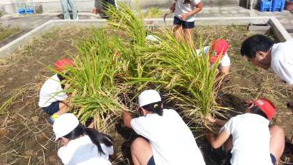 地域の方のお話を伺い、さっそくは稲刈りをしました。