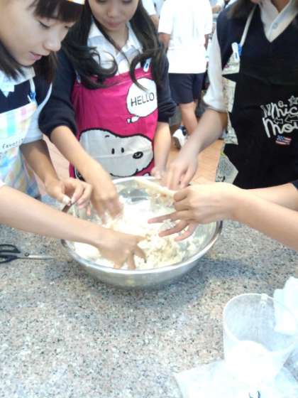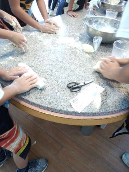 モクモクファームに到着しました。パン作りに取り組んでいます。形ができたら焼いてもらいます。