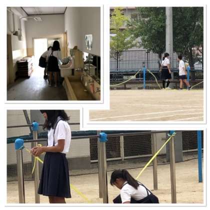 運動会前日の5、6時間目に運動会の準備をしました。