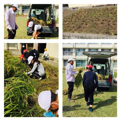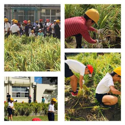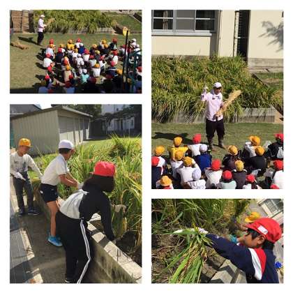 地域の方をゲストティーチャーにお迎えして、稲刈りを行いました。