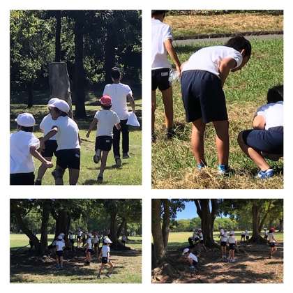 おにごっこのあとは、1年生は、どんぐりひろい、2年生は、自由遊びをしました。