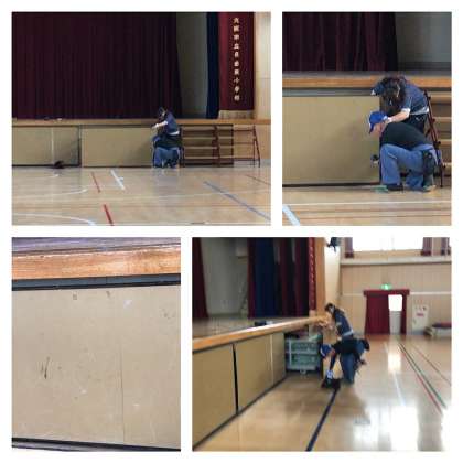 三連休明けの朝、講堂の椅子を入れているところのネジが外れているので、地域の方が直しに来てくださいました。