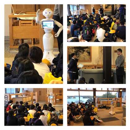 ホテルみち潮に入りました。開舎式です。今回もペッパーくんが迎えてくれました。