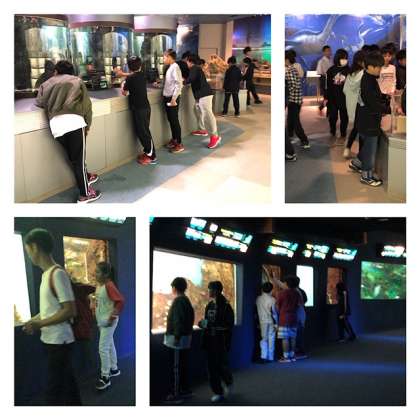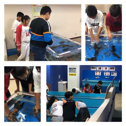水族館を見学しました。一番人気は、やっぱりタッチングプールです。いろいろな魚をビクビクしながらも触って楽しんでいました。