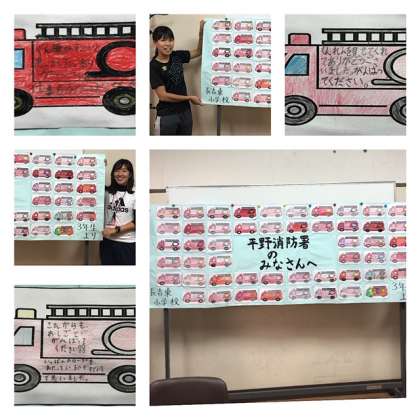 3年生が、平野消防署の方々から教えていただいたことに感謝の気持ちを伝えようと、寄せ書きを作りました。