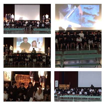 修学旅行の楽しかった出来事の臨場感を伝えようと、スライドを活用します。