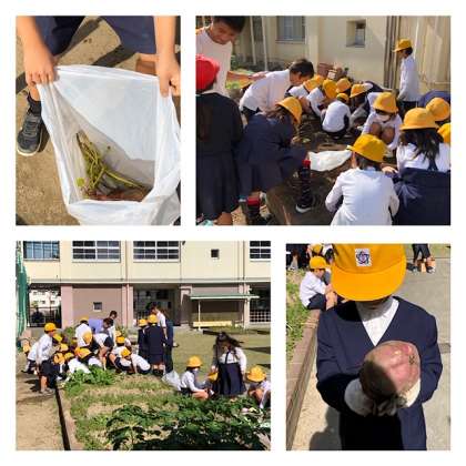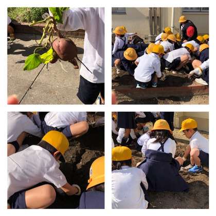 学習園でサツマイモの収穫をしました。土の中から出てくる大きな大きなサツマイモに子どもたちは大喜び。