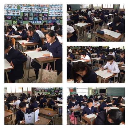 学校中がシーンとなった2時間目と3時間目でした。どの子も真剣に問題に向き合い、鉛筆を走らせていました。できていないことは何なのかを知ることは大切です。それがわかって改善していくことにつながるのです。明日もう1日学力経年調査があります。