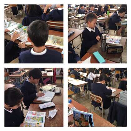 今週は、朝の読書週間です。オルゴールの調べにのって、子どもたちが座席について本を手に取り読み始めます。