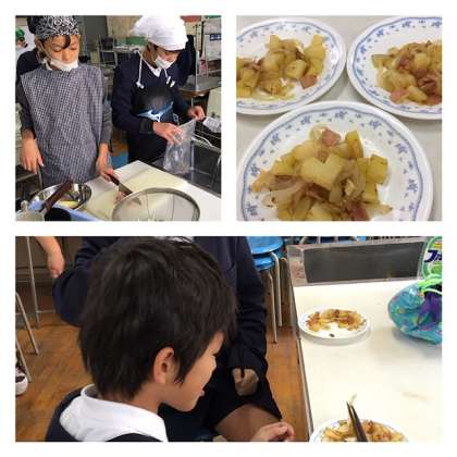 献立はジャーマンポテトです。じゃがいもの皮むきは、ピューラーを使ってしました。なかなか上手でした。