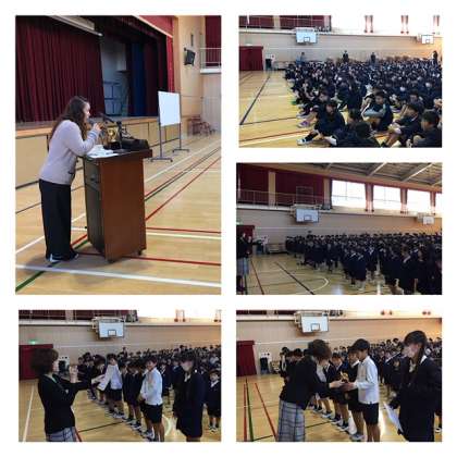 最後は校歌です。講堂中に響く声で気持ちよく歌うことができました。