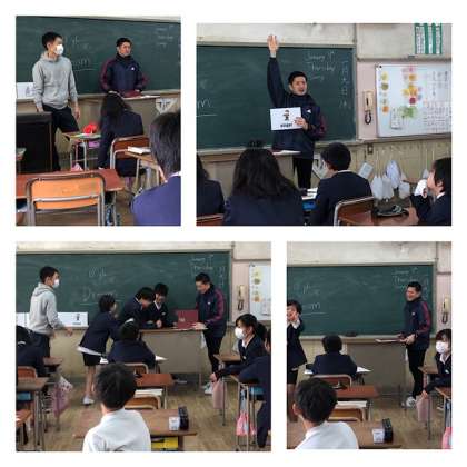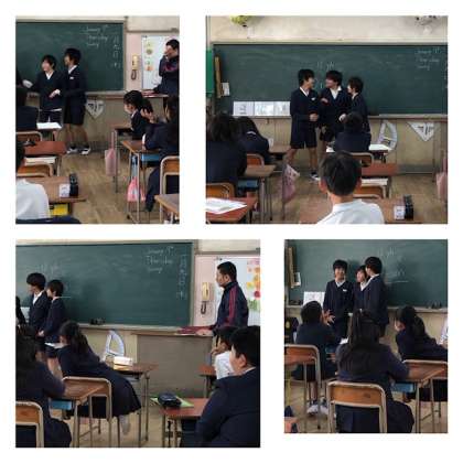 楽しく学習を進めました。前でいろいろなアクションをし、クイズで進んでいきました。