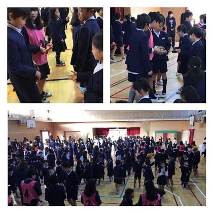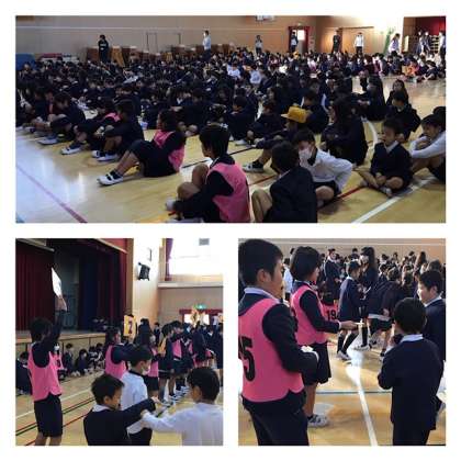 高学年がやさしく低学年とジャンケンをします。この小さなつながりを続けることで、つながりが深まっていくのです。
