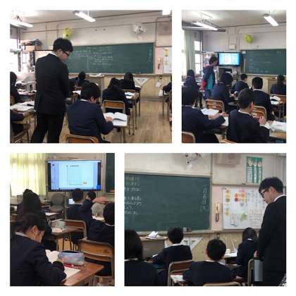 長吉六反中学校から先生が来られて6年の算数の学習を参観されました。柱状グラフの表し方を学習していました。