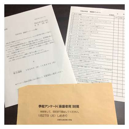 今年度も残すところ、あと三ヶ月です。本校では、学校での取り組みをご家庭でもいかせていただくことを大切にしています。まさに、共に学校をつくるということなのです。どうぞアンケートにご協力をよろしくお願いします。