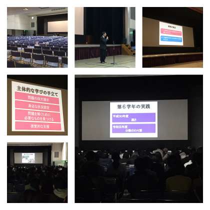 今回から、平野区のすべての小学校が一つに集まって、研究報告を聞きます。今年度は、四つの小学校が報告しました。
