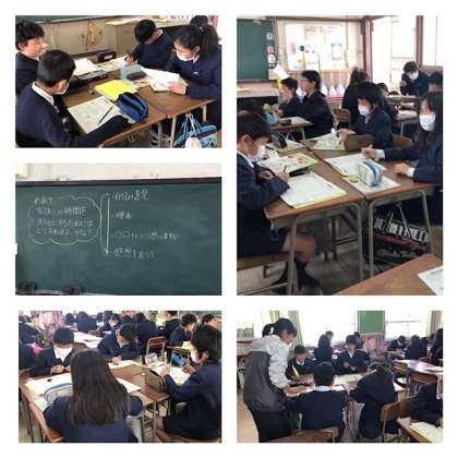 グループになって話し合い、いろいろな意見が出ていました。相手の考えを否定せずに、聞くことは大切なことです。