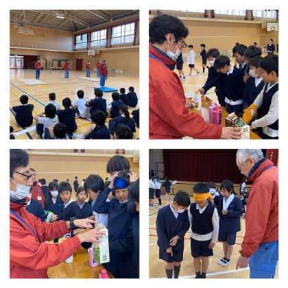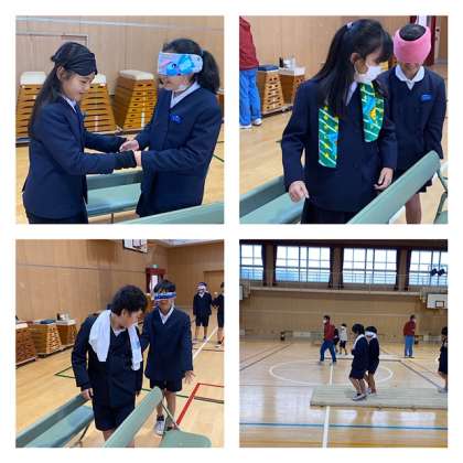5年生は、リハビリテーションセンターのみなさんとともに、アイマスク体験をしました。