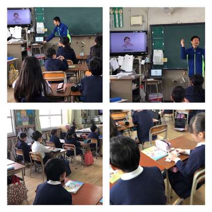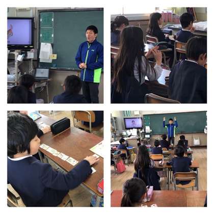 いよいよ来年度から、三、四年生が、外国語活動として週に1時間、五、六年生が外国語科となって週に2時間の英語をします。とても楽しく学習をしていました。