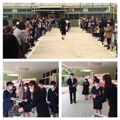 そして、花道を通って、卒業生は長吉東小学校を後にしました。