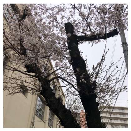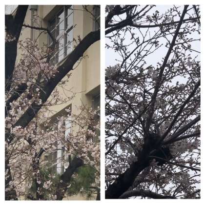 学校中の桜が咲きました。みんなの入学、進級をお祝いしています。
