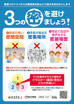 ・ クラスター発生リスクの高い3条件が同時に重なる場を排除