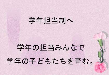 今年度、この制度を施行するにあたり、1組担当、2組担当、3組担当という学級担当者は決めますが、学年担当の先生たちは、常にコミュニケーションをとり、情報を共有し、高学年では教科担当制も取り入れ、それ以外の学年では、学年担当がそれぞれの学年の授業を受け持つ交換授業を行い、全ての学級の児童の担当であるという意識をもって全ての児童を見ていきます。