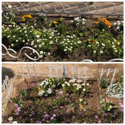 長吉東小学校の花壇です。お世話を毎日していただいているおかげでとても美しい花がたくさん咲いています。