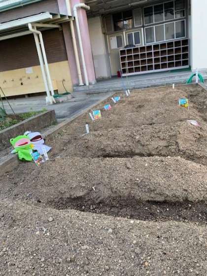にこひろ にある がっきゅうえん に おはなの たねを まいたでー!