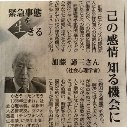とっても難しいことです。人と人とはつながらないといけません。「つながり」をつくることは大切なことです。けれども、今は、人との接触を8割減らさなければなりません。そのことで悩みます。