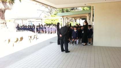 出待ちで少し緊張している子どもたちです。