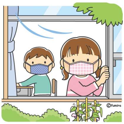 学校では、換気をし、マスクをつけ、ソーシャルデイスタンスを守って行動をします。感染のリスクが少なくなるよう精いっぱい努めます。